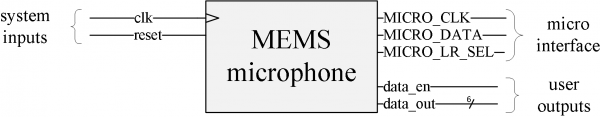 This module controls the MEMS microphone embedded on the Nexys4 board and outputs its data